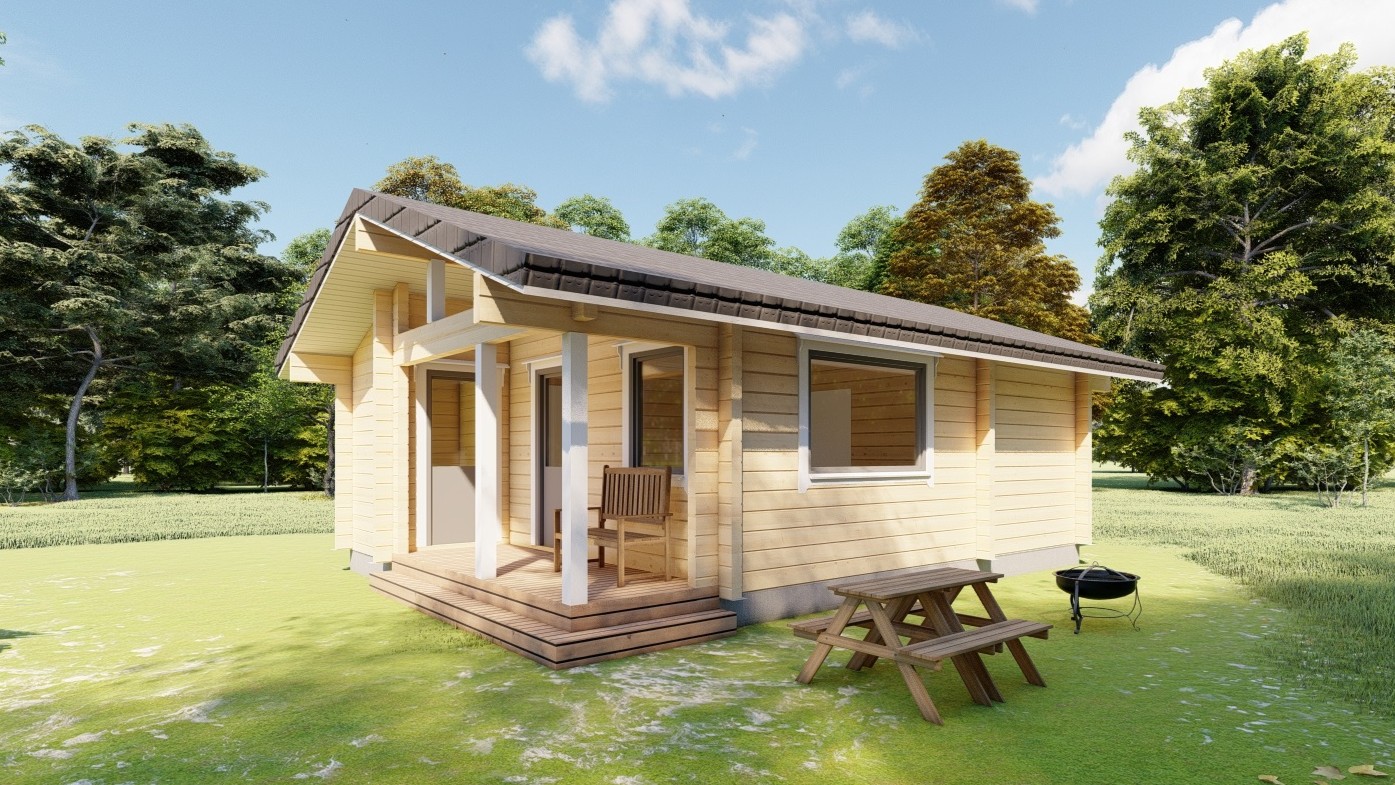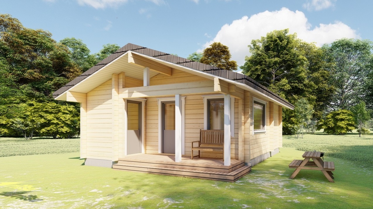 Palkmaja Birgit on väikse terrassi ja kahe magamistoaga suvila. Võimalus mansardkorruse rajamiseks magamistubade kohale.