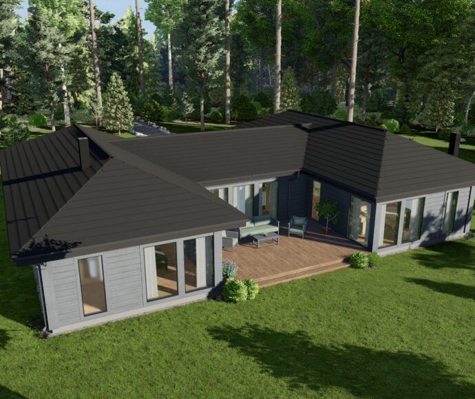 Freya H-kujuline arhitektuur loob selgelt eraldatud ühis- ja privaattsoonid, mille keskseks ruumiks on avar 52,6 m² avatud köök-elutuba. Maja südames asuvale 37,4 m² terrassile on mugav juurdepääs nii elutoast kui ka hoone teises tiivas paiknevast saunaruumidest, muutes selle ideaalseks vaba aja veetmiseks ja külaliste võõrustamiseks. Mudeli läbimõeldud planeering sisaldab mitut ruumikat magamistuba ja lisaruume, tagades privaatsuse ja paindlikud lahendused igale pereliikmele.